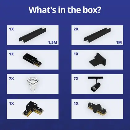 Bright Choice Complete Set 1-Fase Rail L 1,5 x 2 Meter Zwart | incl. 7x Spot + GU10 2700K 3W Dimbaar + Eindkap, Voedingsconnector en L -Verbindingsstuk