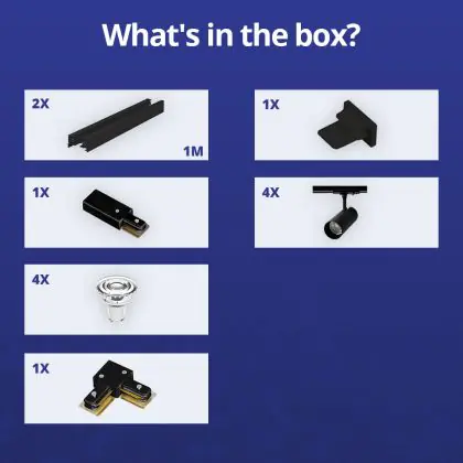 Bright Choice Complete Set 1-Fase Rail L 1 x 1 Meter Zwart | incl. 4x Spot + GU10 2700K 3W Dimbaar + Eindkap, Voedingsconnector en L -Verbindingsstuk