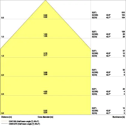 ![]() De kleurcode is een combinatie van de kleurweergave (CRI) en lichtkleur (Kelvin). Het eerste getal is de kleurweergave (1 = zeer slechte kleurweergave, 9 = maximale kleurechtheid). Het tweede en derde cijfer betreft de lichtkleur. Een lamp met kleurcode 830 heeft bijvoorbeeld een goede kleurweergave en straalt een warm wit licht uit (3000K), waar een lamp met de kleurcode 940 een uitstekende CRI heeft en een koel wit licht (4000K) uitstraalt. |