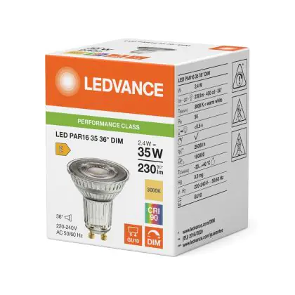 Ledvance LED Reflector GU10 PAR16 2.4W 230lm 36d - 930 Warm Wit Warm Wit| Dimbaar - Vervangt 35W