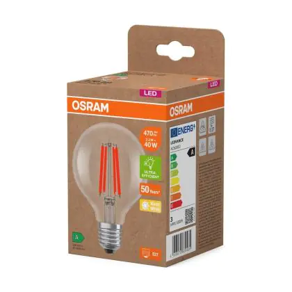 Osram LED Lamps E27 Globe Filament Helder 2.2W 470lm - 827 Zeer Warm Wit | Vervangt 40W