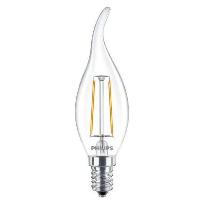 Philips Corepro LED Kaars E14 gebogen punt Filament Helder 2W 250lm - 827 Zeer Warm Wit | Vervangt 25W